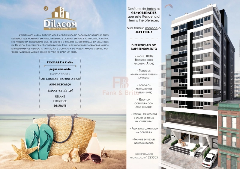 Edifício localizado no bairro Zona Nova em Capão da Canoa. Prédio com 12 andares, 100% revestido em plaquetas, suíte e lavabo em todos os apartamentos, hidrômetro individual, gás central, espera para ar condicionado split, sacada fechada, hall mobiliado e decorado, câmera de segurança, zeladoria permanente. Rooftop com piscina, espaço kids e salão de festas.